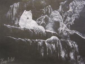 Для Ирины это первая персональная выставка. На большенстве полотен в неповторимой манере изображены животные. Особого внимания заслуживают картины, выполненные в черно-белом цвете: художником четко тонко прорисованы самые мелкие детали.