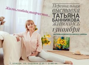 Своими работами Татьяна Банникова стремится открыть перед бежечанами яркие краски и подарить им частичку тепла, солнца и света. Собранные ею работы выполнены в разных техниках. Татьяна продолжает искать себя и пробует рисовать в разных стилях. В основном, это картины маслом на холсте. На, выставке Татьяны можно увидеть натюрморты и морские пейзажи. Присутствие множества картин с цветами говорит о женственной и романтичной натуре героини. Татьяна старается передать очертание каждого цветка как можно живописней.