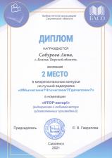 - Дипломом за 1 место в номинации "Популяризация творчества молодых" областного конкурса - фестиваля "Тверская земля: история, события, люди".