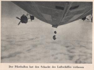 В районе Северной Земли был выпущен очередной радиозонд проф. Молчанова для исследования стратосферы. Техника выпуска заключалась в следующем. Внутри дирижабля, около люка, устроенного для выпуска радиозонда, наполняют маленький сферический аэростат, объемом 5 м3, водородом из одного из отсеков корабля. К этому аэростату подвешивают изобретенный проф. Молчановым коротковолновый радиоаппарат, который, подымаясь на высоту, будет передавать соответствующие сигналы для их дальнейшей обработки.»