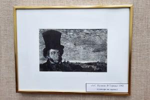 Работы художника, посвященные Александру Сергеевичу, обыграны стилизованной под старину экспозицией-фотозоной пушкинской эпохи.