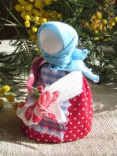 Кукла "Вербница". В старину изготовление этой куклы считалось таким же обязательным занятием перед Пасхой, как и роспись яиц. Делалась такая куколка на Вербное воскресенье в зеленых (весенних) тонах или Пасху из красного материала. Кукла «Вербница» может стать подарком и заменить собой пасхальное яйцо. Это действительно прекрасный, добрый весенний дар, особенно – на Вербное воскресенье, объединяющий и древнерусскую, и православную традицию. В руках кукла держит веточки вербы. Верба первая оживает после зимы, поэтому на Руси повсеместно считалась растением, наделённым особой жизненной силой, символизирующим возрождение Природы, силу, гибкость, плодородие. По поверьям славян, веточки вербы оберегают дом, защищают его от лихих гостей и пожара, берегут от града посевы. |