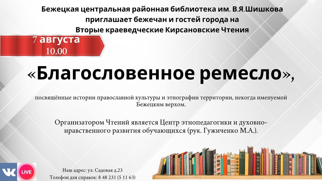7 августа 2021 года в Бежецке прошли Вторые Кирсановские Чтения, посвященные истории православной культуры и этнографии «Благословенное ремесло».