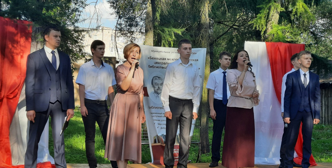 В День города Бежецкая центральная библиотека принимала друзей и гостей на традиционной библиоплощадке у памятника Семье Гумилёвых-Ахматовой. Программа "В кругу друзей" длилась два часа и за это время почти ни один зритель не покинул праздник до окончания программы.