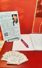 В фойе библиотеки в двух ярко освещённых витринах разместилась феерия красок и утончённого изящества - выставка вышитых работ нашей землячки, сейчас проживающей в Твери.