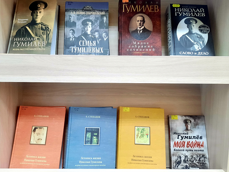 На сайте библиотеки вы можете познакомиться с виртуальной книжной выставкой «Книги из фонда библиотеки о жизни и творчестве Н.С. Гумилева, А.А. Ахматовой и Л.Н. Гумилева»