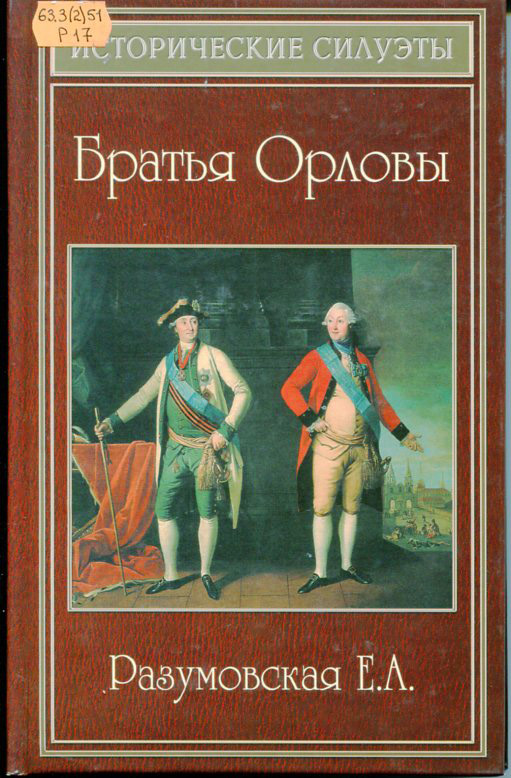 Разумовская, Е. А. Братья Орловы [Текст] / Е.А. Разумовская. - Ростов-на-Дону : Феликс, 2011. - 211, [3] c. - (Исторические силуэты). История России XVIII в. полна дворцовых переворотов, тайн, интриг, незаконных захватов власти и любовных романов. Это время ярких личностей, выдающихся авантюристов, смелых кавалеров, какими и были братья Орловы, добывшие русскую корону для немецкой принцессы. Орловы верно служили Отечеству и своему народу как на военном, так и на культурном поприще. В этой книге вас ждет всесторонний и увлекателдьный рассказ о пяти братьях Орловых, бывших сподвижниками Екатерины II. Местохранения: абонемент |