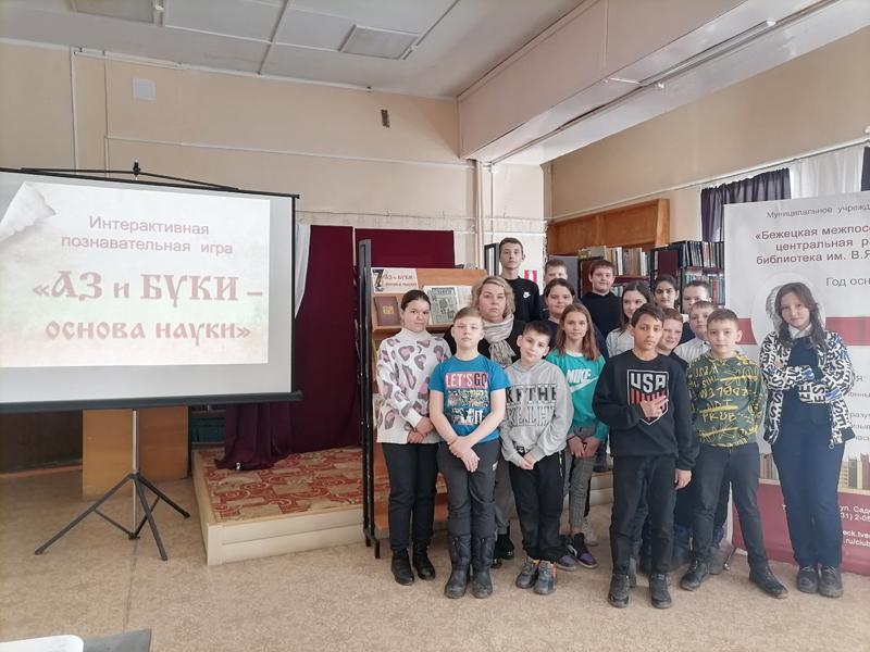6 апреля в центральной библиотеке им. В.Я. Шишкова для обучающихся школы №2 им. В.С. Попова была проведена познавательная интерактивная игра «АЗ и БУКИ – основа науки».
