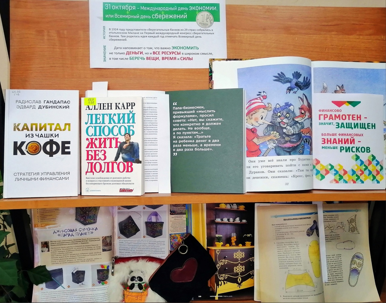 Представлены книги по финансовой грамотности, семейному бюджету, издания об "оздоровлении" личных финансов, а также о способах домашней экономии (например, о разумном ведении быта и о второй жизни ненужным вещам, предметам интерьера).