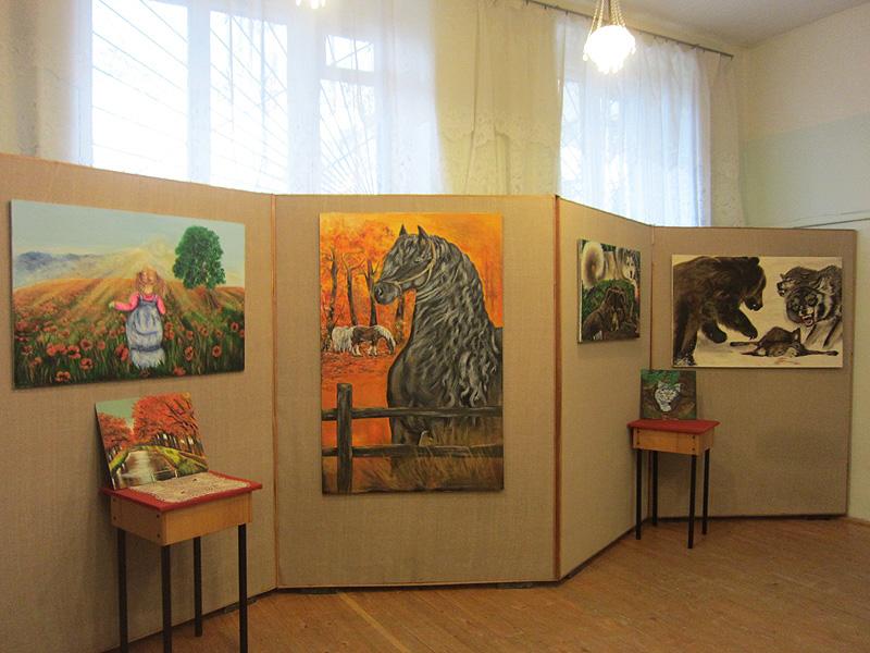 Для Ирины это первая персональная выставка. На большенстве полотен в неповторимой манере изображены животные. Особого внимания заслуживают картины, выполненные в черно-белом цвете: художником четко тонко прорисованы самые мелкие детали.