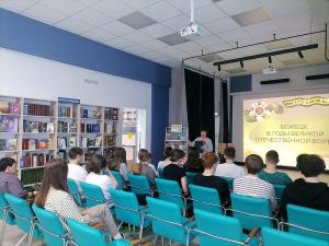 Сегодня гостями библиотеки стали обучающиеся 10 класса СОШ №4 им. В. Бурова. Библиотекари провели ребят по маршруту памяти: рассказали о том, как наш город жил в те трудные годы, о памятных местах города, связанных с Великой Отечественной войной.