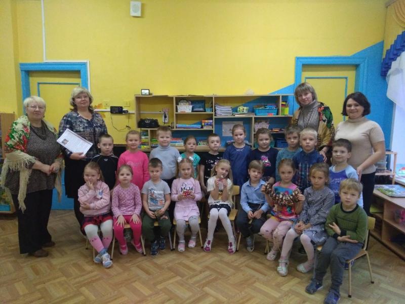 Детишки с удовольствием слушали сказочницу Лидию Алексеевну Ефимову, рассказавшую им сказки Татьяны Кирюшатовой "Крупеничка" и "Берестушка", и сказку собственного сочинения "День и Ночь". Об истории кукол рассказала Татьяна Геннадьевна Петрова.