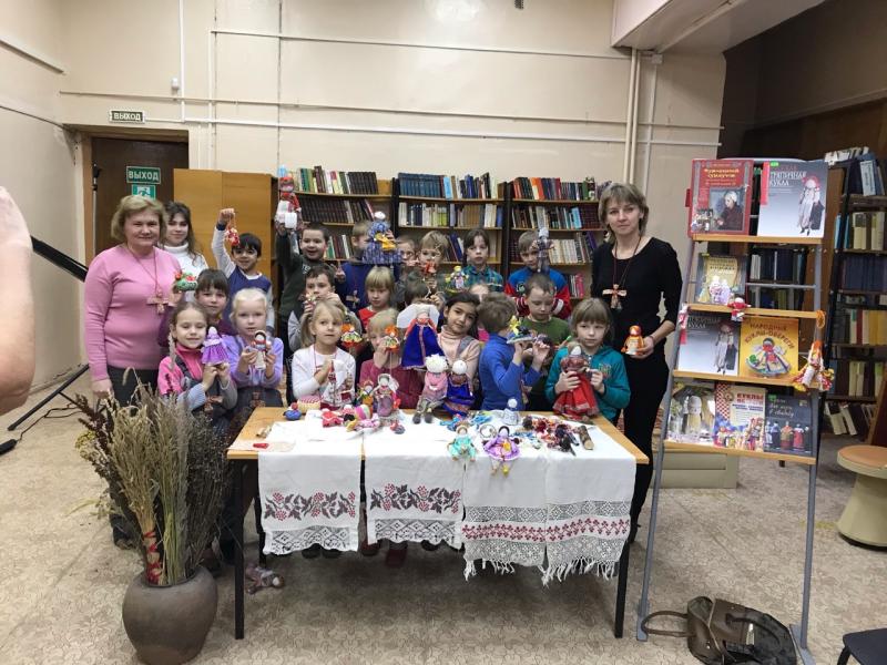 20 ноября в центральную библиотеку пришли ребята подготовительной группы д/с №3. Для них была проведена познавательная беседа "Русская народная кукла". Ребята окунулись в увлекательный мир старинной игрушки. С интересом изучали непривычных для современного человека кукол, слушали рассказ о их назначении, обычаях и традициях. С энтузиазмом было встречено предложение сделать куколку-оберег своими руками. В завершение встречи сказочница Ефимова Лидия Алексеевна рассказала сказку "Кувадка" (автор Татьяна Кирюшатова ).