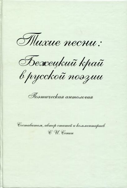 Тихие песни : Бежецкий край в русской поэзии. Поэтическая антология / сост., авт. ст. и коммент. С.И. Сенин. – Санкт-Петербург : [ВВМ], 2013. – 535, [1] с. В 2014 году на "Неделе тверской книги" в Тверской областной универсальной научной библиотеке им. А.М. Горького Сенину С.И. был вручен диплом “Открытие года” как автору за неожиданную книгу, поразившую тверское книжное сообщество. Лауреат Всероссийской литературной премии имени В. Я. Шишкова 2015 года. за книгу «Тихие песни: Бежецкий край в русской поэзии». |