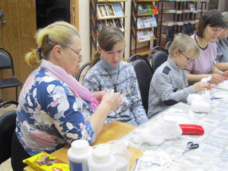 8 декабря в центральной библиотеке Ольга Морошкина провела мастер-класс по созданию новогодней игрушки из ваты. Создание таких игрушек новое для Ольги Павловны увлечение, но ей уже удалось найти свой стиль и создать незабываемые новогодние украшения. Своим опытом она щедро делилась с пришедшими на мастер-класс, творческий процесс увлек и детей и взрослых.