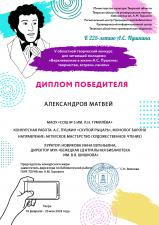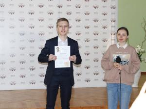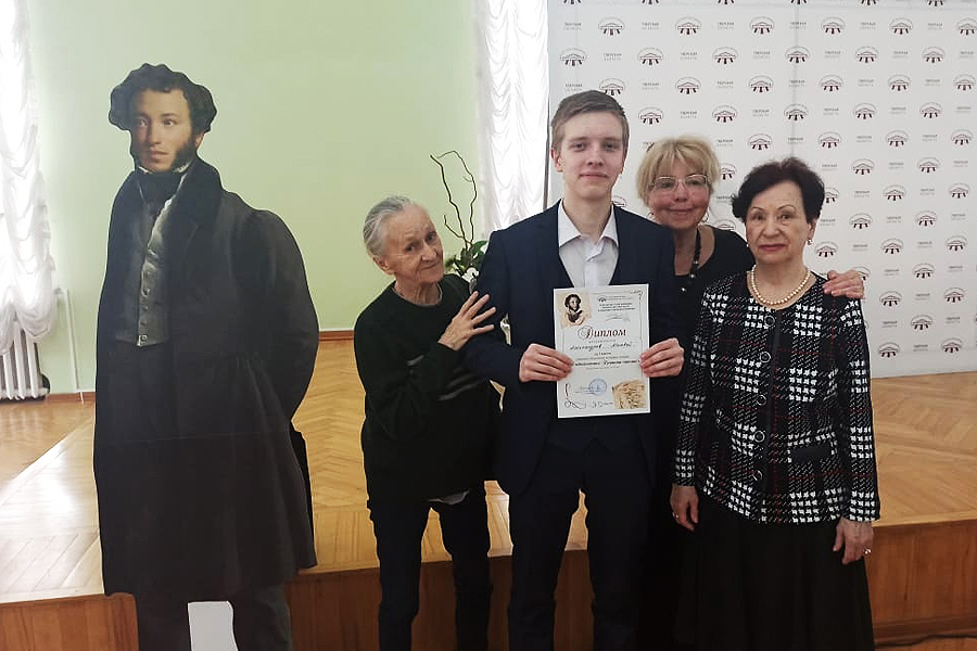 Диплом победителя вручен Матвею Александрову, участнику Творческой лаборатории «Живое слово», за исполнение монолога барона из пьесы «Скупой рыцарь» А.С. Пушкина.
