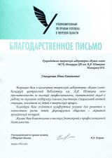 - Почётной грамотой Министерства культуры Тверской области "За многолетний добросовестный труд, высокий профессионализм, большой вклад в развитие библиотечного дела Тверской области" (награждена директор муниципального учреждения культуры "Бежецкая межпоселенческая центральная районная библиотека им. В.Я. Шишкова"),
