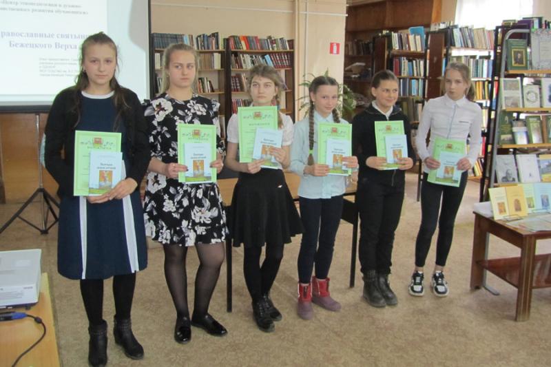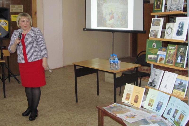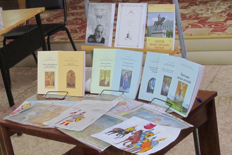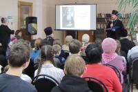 | 19 марта в Бежецкой библиотеке прошел День православной книги. Зрителям и участникам встречи были представлены новинки православной литературы из фонда библиотеки. Протоиерей Ярослав Шведов рассказал о бежецких священнослужителях, участниках Великой Отечественной войны. Настоятель Краснохолмского Свято-Николаевского архиерейского подворья д. Слобода Краснохолмского района иеромонах Силуан (Конев) представил репринтное издание книги игумена Анатолия Смирнова "Историческое описание Краснохолмского Николаевского монастыря" (1883г. издания). Гужиченко М.А. познакомила с книгами, изданными совместно с Центром этнопедагогики и духовно-нравственного развития обучающихся при МОУ СОШ №2 им. В.С. Попова и историко-краеведческим альманахом «Тверской край». |