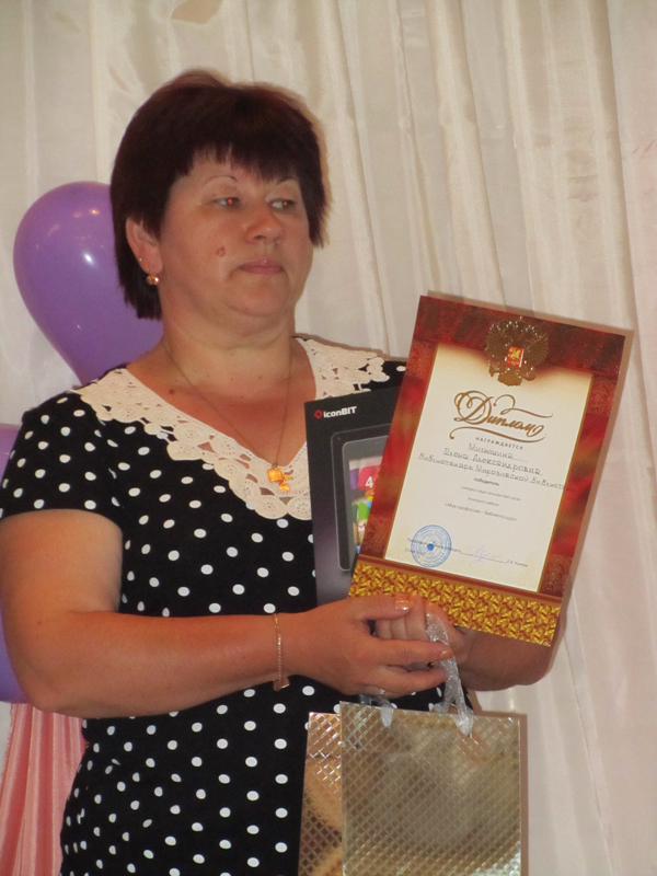 Все конкурсантки были достойны победы, нелегко пришлось жюри определить лучшего. По итогам конкурса «Моя профессия – библиотекарь» наибольшее количество баллов набрала Милюшина Е. А., награждена дипломом и ценным подарком - планшетом за первое место. Остальные участники конкурса так же награждены дипломами и памятными подарками. Хотелось бы пожелать всем библиотекарям, чтобы работа на местах в библиотеках была такой же интересной и творческой, какой была на конкурсе.