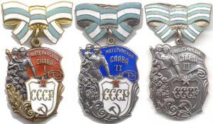 Первый Указ Президиума Верховного Совета СССР о награждении орденами «Материнская Слава» вышел 6 декабря 1944 года. Согласно Указу, орден I степени получила 21 женщина, орден II степени — 26 женщин и орден III степени — 27 женщин. При этом орден I степени № 1 был вручен колхознице Аксёновой М.С., орден II степени № 1 был вручен продавщице магазина Аввакумовой Е.С., а орден III степени № 1 был вручен домашней хозяйке Андриевских А.С.