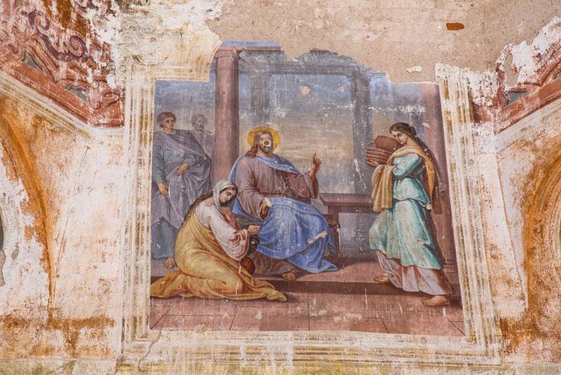 ![]() Церковь Ильи Пророка. Фреска "Христос в доме Марфы и Марии" |