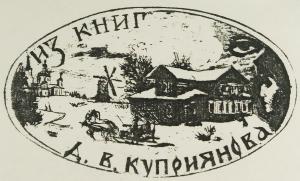 Экслибрис из книги музейно-литературного центра "Дом поэтов" в селе Градницы Бежецкого района. -------------------------------------- Экслибрис из книги Д.В. Куприянова, тверского краеведа. |