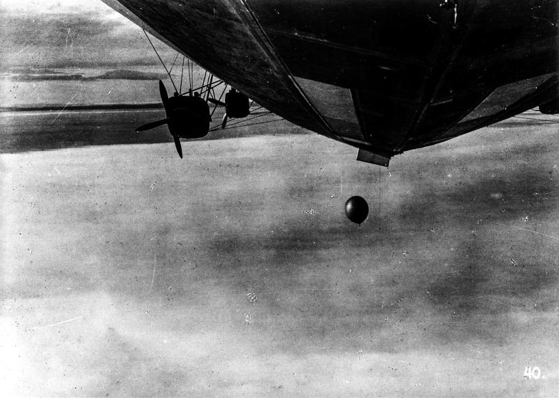 Так как с момента выпуска сферика из нижней части дирижабля он благодаря подъемной силе мог бы скользить по наружной стене дирижабля, зацепив за моторную гондолу, винт или еще за какой-либо выступ и повредиться, а может быть и повредить винт, то к самому аппарату привешивали еще добавочный груз (точно высчитанный), который перетяжелял бы всю систему, благодаря чему аэростат в первые секунды после выпуска падал вертикально вниз. Для освобождения от добавочного груза на главной его бичеве установлена небольшая гильотина с часовым механизмом, которая через определенный промежуток времени после выпуска приводила в движение нож, перерезавший нить с добавочным грузом. Последний улетал книзу, а освобожденный сферик начинал забирать высоту. Когда весь радиозонд собран и приведен в готовность к выпуску, дирижабль замедляет свой ход, доводя скорость приблизительно до 4 м/сек. В это время открывается люк в нижней части дирижабля и выпускают радиозонд, до момента действия гильотины стремительно падающий вниз. Благодаря наличию некоторого движения сферик уходит за пределы корабля, там груз отсекается, и сферик с радиозондом уходит в высоту.