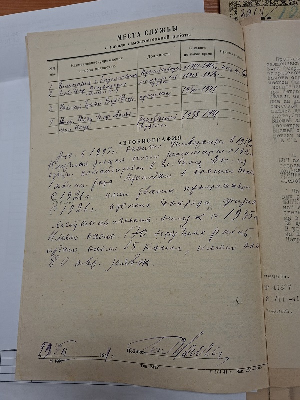 Он отыскал и прислал нам личное дело профессора Павла Александровича Молчанова, а также личное дело и фотографию его супруги Надежды Алексеевны Петропавловской (Молчановой), студентки Императорского Санкт-Петербургского университета. Она тоже наша землячка.