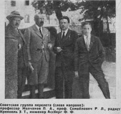И Молчанов и Самойлович представляли старшую часть нашей небольшой советской группы. Мы же с Федором Федоровичем Ассбергом — младшее поколение. Такому расслоению способствовало и то, что Самойлович и Молчанов были ленинградцами, а мы с Ассбергом — москвичами.»