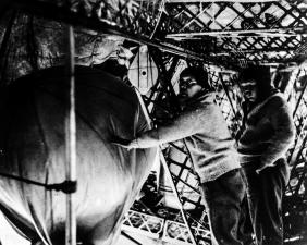 В районе Северной Земли был выпущен очередной радиозонд проф. Молчанова для исследования стратосферы. Техника выпуска заключалась в следующем. Внутри дирижабля, около люка, устроенного для выпуска радиозонда, наполняют маленький сферический аэростат, объемом 5 м3, водородом из одного из отсеков корабля. К этому аэростату подвешивают изобретенный проф. Молчановым коротковолновый радиоаппарат, который, подымаясь на высоту, будет передавать соответствующие сигналы для их дальнейшей обработки.»