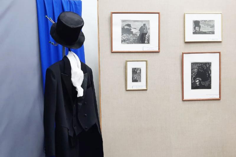 Работы художника, посвященные Александру Сергеевичу, обыграны стилизованной под старину экспозицией-фотозоной пушкинской эпохи.