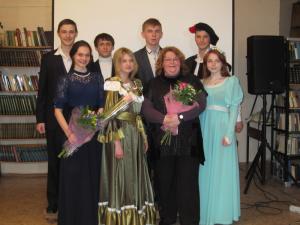 Артисты – обучающиеся школы №5, под руководством Инны Новиковой показали театральные этюды, поразившие до глубины души. Театр – это как море: захлестывающие эмоции, переживания за героев, переполняющие чувства. Ромео и Джульетта, Николай Гумилев и Анна Ахматова, «Бесприданница» и Андрей Миронов, один за одним появлялись в зале библиотеки. Великолепная работа, замечательная игра. Зрители долго кричали «Браво»!