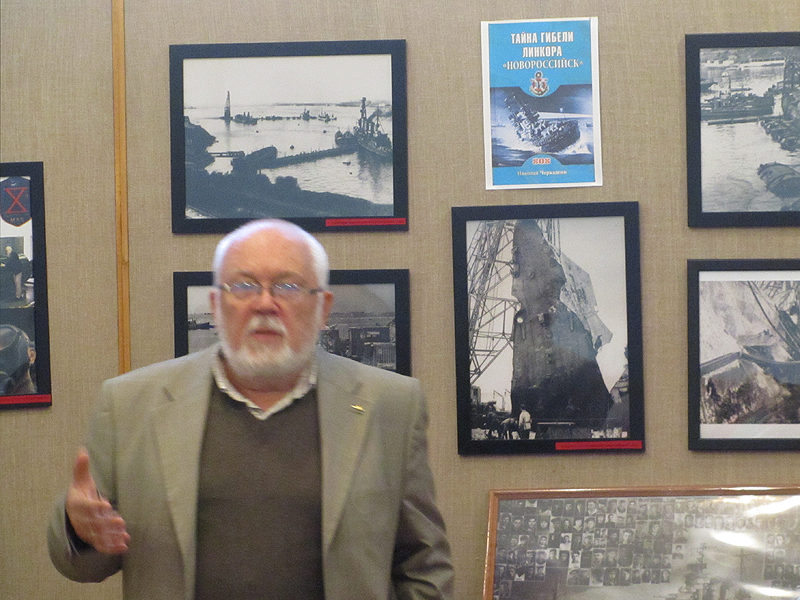 В начале сентября в Центральной районной библиотеке им. В.Я. Шишкова прошла встреча с историком, публицистом, автором нескольких десятков книг по истории Великой Отечественной войны, истории Военно-морского флота, бывшим офицером-подводником Николаем Андреевичем Черкашиным. Он представил бежечанам свою новую книгу «Тайна гибели линкора «Новороссийск» и фотовыставку, посвященную этому событию.