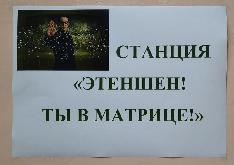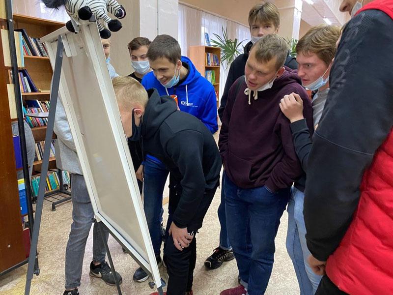 Молодые люди прошли станции "Фейс-контроль" — там они по портретам называли имена русских писателей и поэтов, "Этеншен! Ты в матрице!" — по карте искали спрятанный QR-код и считывали загаданное слово, на станции "Скажи своё веское слово" ребята продолжали афоризмы и поговорки, на станции "Юный библиотекарь" их ждал кроссворд.