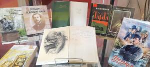 Ко дню рождения писателя в фойе библиотеки оформлена выставка "Большой писатель, великий труженик".