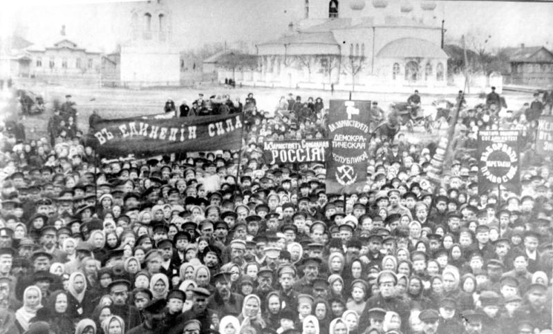 1917 г. Первый революционный митинг на площади против здания бывшего земства (Дом культуры)