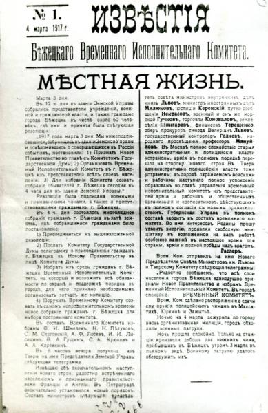 1917 года вместо маленьких "Известий" бежечане получили большую, полнокровную провинциальную газету "Бежецкий вестник". С 30 номера "Вестник" выходил с подзаголовком "Социалистическая газета", что соответствовало духу времени. Так продолжалось до октября 1917 года.
