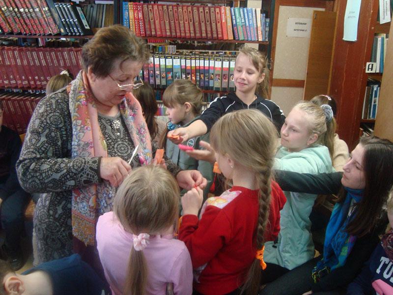 Многие предпочитают книги в классическом бумажном варианте, и бумаге была посвящена следующая часть экскурса в мир книг. Библиотекарь провела мастер-класс по изготовлению цветов из бумажных и атласных лент.
