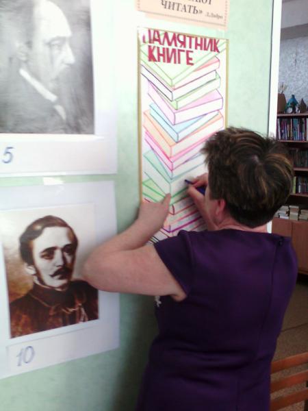 Затем гости библиотеки приняли участие в создании Памятника Книге и украшении Дерева читательских предпочтений. В основном, присутствующие проявляют интерес к историческим романам, современной отечественной литературе и отечественным детективам. Закончилось мероприятие библиофуршетом (чаепитием) с ретро музыкой. В этот вечер в библиотеку записались три читателя.