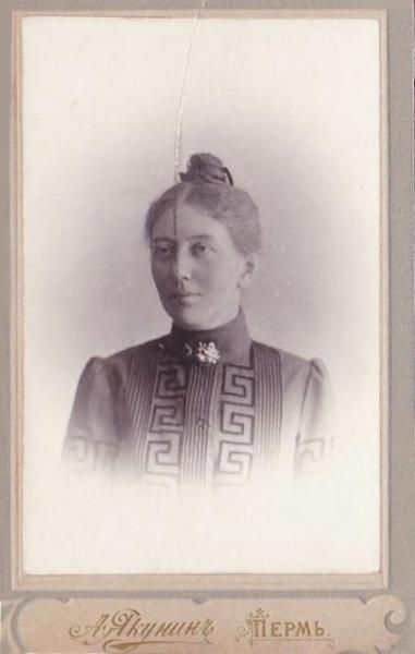 Родилась 23.01.1891 г., Бежецк, православная, дочь крестьянина, Бежецкая женская гимназия с серебряной медалью.