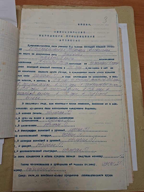 Так же он прислал личное дело супруга Надежды Алексеевны - профессора Павла Александровича Молчанова, тоже нашего земляка (материал о П.А. Молчанове)