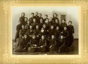 На фотографии, которая хранится в краеведческом фонде библиотеки (и по итогам консультации А.В. Вострикова), это историко-филологическое отделение, скорее всего - выпускницы 1911 - 1914 г., вполне может быть выпуск 1912 г., так как эта фотография попала к нам с некоторыми вещами из дома Антонина Герасимовича Кирсанова.