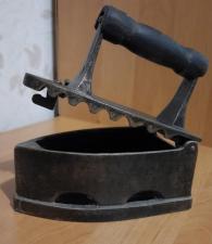 Первый официальный утюг представлял собой увесистый металлический предмет, цена которого составляла 5 алтын. Он нагревался за счёт раскалённых углей, которые засыпали внутрь совком через откидную крышку. По бокам были приспособлены отверстия, чтобы раздувать эти угли.