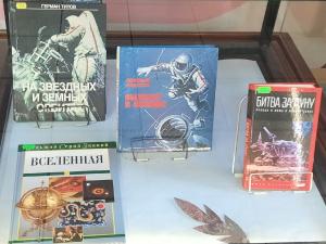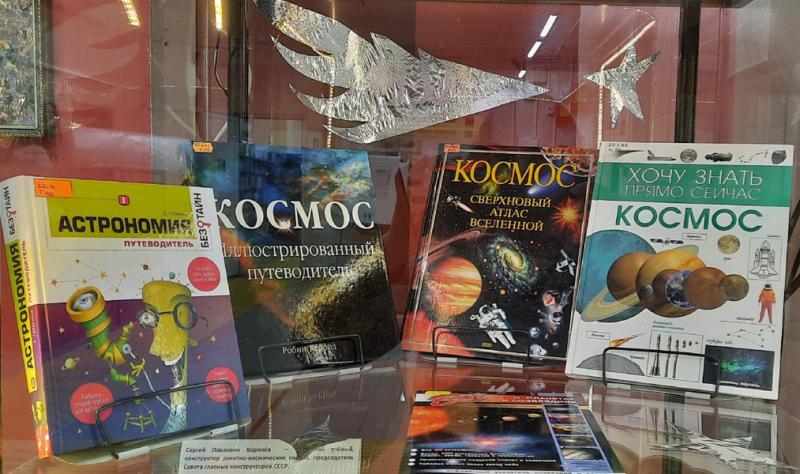 К этой дате в фойе библиотеки оформлена выставка "Выход в космос разрешаю..."
