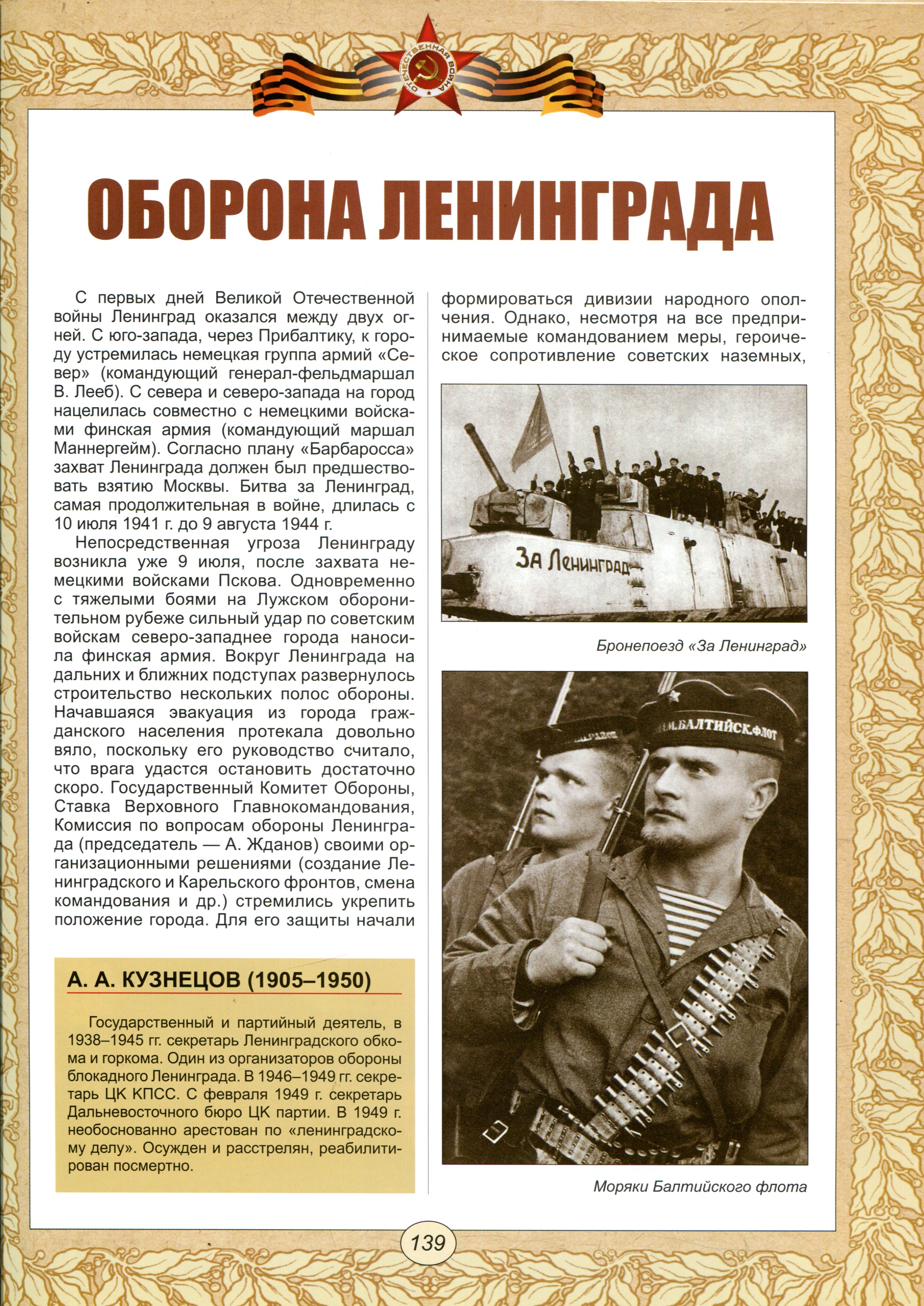 Известный историк, доктор исторических наук, профессор Б.П. Белозёров на основе архивных документов в деталях показывает, как происходило превращение Ленинграда в сражающийся город-фронт, вклад ленинградцев в его защиту, усилия ленинградских ученых, направленные на борьбу с голодом, работу промышленности, которая в экстремальных условиях смогла не только сохранить жизнеспособность, но и нарастить выпуск продукции, создание Дороги жизни, деятельность А.А. Жданова, Л.А. Говорова и других руководителей обороны. В центре внимания самая важная проблема Блокады - продовольственная, и пути ее решения. Автор подробно освещает важнейшие направления организации обороны города: ход военных действий, планирование и проведение оборонительных и наступательных операций (в том числе - гибель 2-й Ударной армии); повседневная жизнь интеллигенции, рабочих, студентов и школьников в блокадном Ленинграде; ход партизанского движения на оккупированных территориях Ленинградской и Новгородской областей.