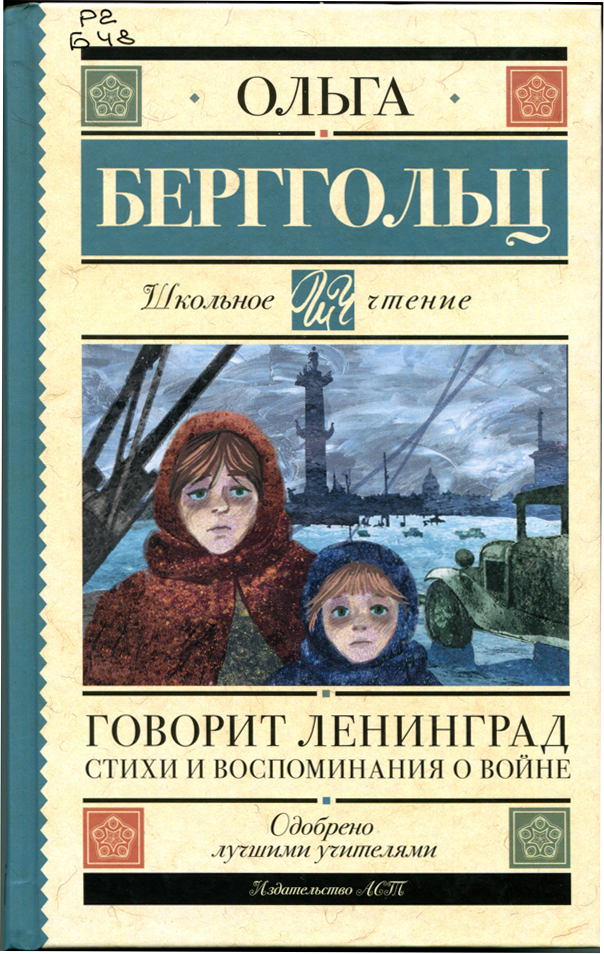 - Берггольц О. Ф. Говорит Ленинград : стихи и воспоминания о войне : для старшего школьного возраста / Ольга Берггольц. - Москва : АСТ, 2023. - 318, [2] с.. - (Школьное чтение)