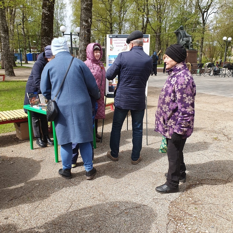 В День Победы, по уже сложившейся традиции, сотрудники нашей библиотеки приглашают жителей и гостей города в городской сад, в выездной читальный зал. Не оказалось исключением и нынешнее 9 мая, хотя погода не радовала.