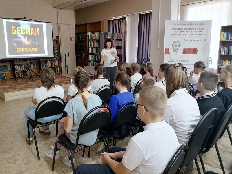 3 и 4 сентября Бежецкая библиотека им. В.Я. Шишкова принимала у себя обучающихся школы-интерната для слабовидящих детей. Для них была проведена беседа «Беслан. Трагедия, которую никто не забудет».