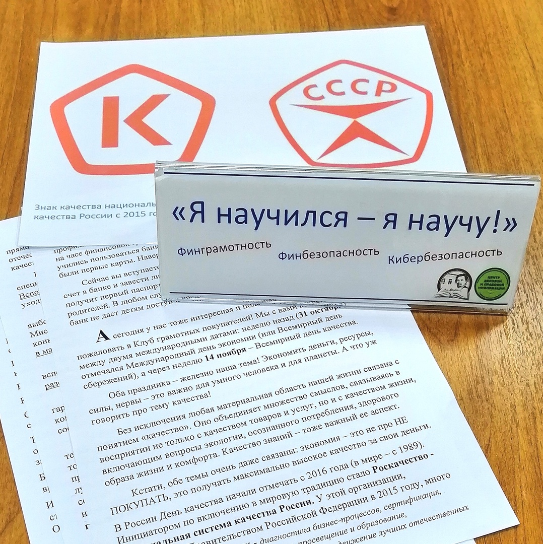 Занятие было организовано в рамках обществознания и прошло ровно между двумя датами: Международным днём экономии (его называют также Всемирный день сбережений) 31 октября и Всемирным днём качества, который предстоит 14 ноября.
