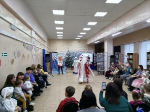 26 декабря здесь прошло первое театрализованное представление «А дело было в сундуке…». В гости к сказочным героям пришли дети, чьи отцы в настоящее время защищают нашу Родину.Скоморохи, Баба Яга, Разбойница, Снегурочка и, Дедушка Мороз встречали маленьких гостей в читальном зале.